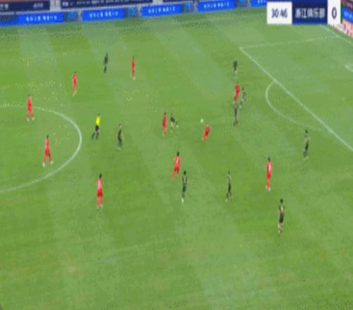 第31分钟,浙江队差一点再度丢球,刘若钒禁区弧顶转身之后左脚抽射击中立柱弹出,上海海港仍是一球领先。