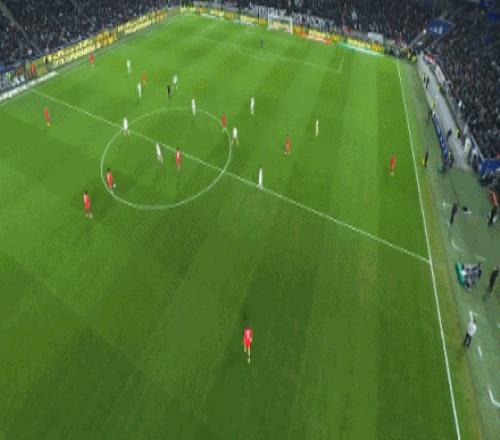第8分钟,费尔明远射造成对方禁区内手球,裁判处以点球“极刑”,莱万命中,1比0。