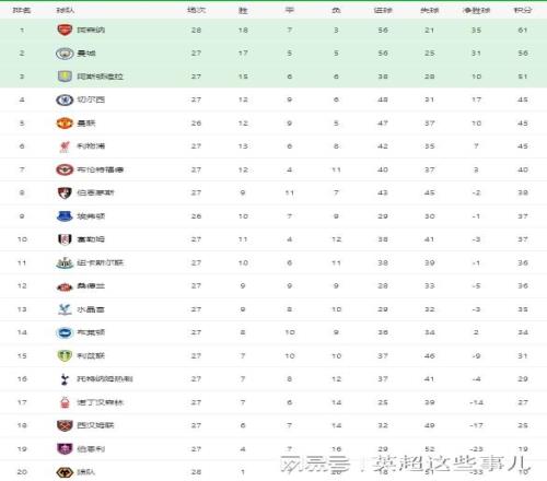 英超最新积分榜:阿森纳笑傲德比5分领跑,利物浦读秒绝杀仍居第6 -